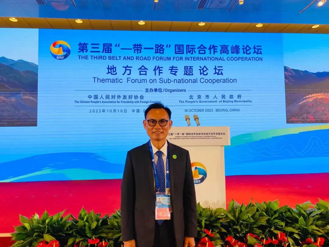 10月18日,柬中友好协会副主席兼洪森亲王与夫人奖学金协会(A.M.T)海外留学生管理组组长刘凡阁下在中国北京参加第三届“一带一路”国际合作高峰论坛时,认为 “一带一路”倡议提出10周年,中柬高质量共建“一带一路”,不仅为两国人民带来了实实在在的利益,也为沿线国家的繁荣作出了积极贡献。