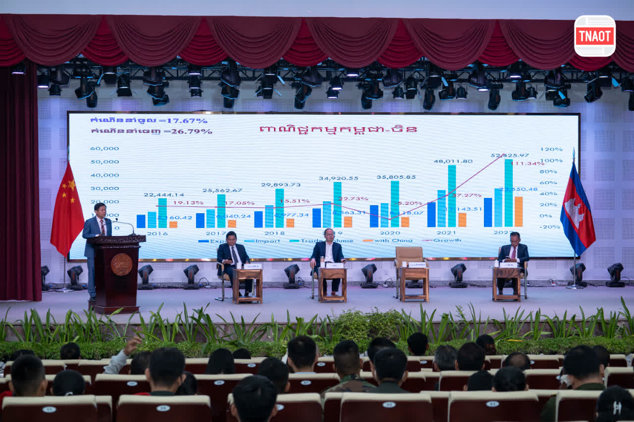 柬埔寨皇家科学院中国研究学所郭应伦教授阐述了《中柬贸易关系的潜力与挑战》,他从进出口两大方面分别分析了中柬贸易的发展变化,他指出,近年来流入柬埔寨的外资不断增长,柬埔寨也有多个经济特区发展强劲。中柬双方的贸易额几乎达到柬埔寨的对外贸易额的50%。