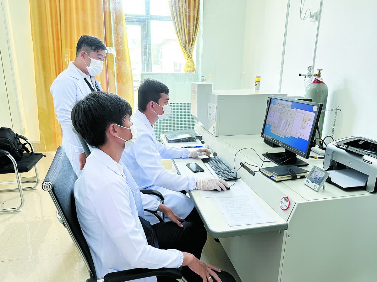 柬埔寨国家地质实验室里,技术人员正在调试设备、查看数据。