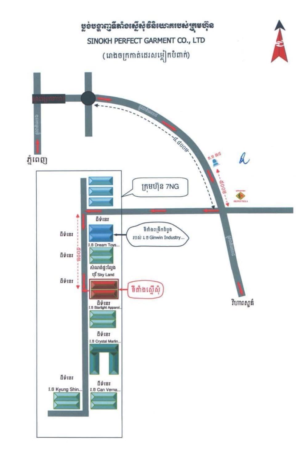 2. “SINOKH PERFECT GARMENT CO.,LTD”公司,兴建制衣厂,位于干拉省,沙干拉县,堂庙分县,萨达村。其投资额约530万美元,将创造1533的工作岗位。