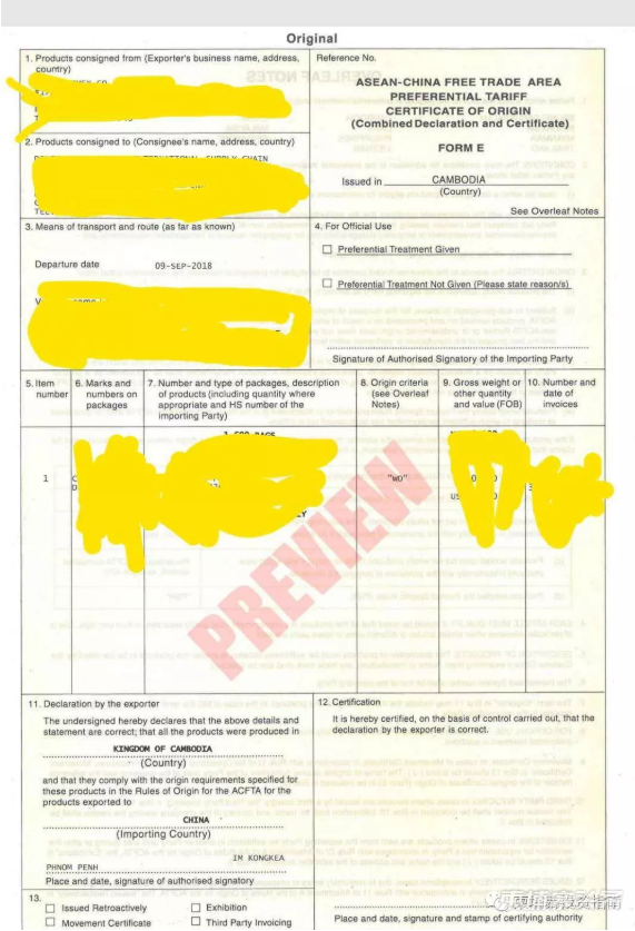 ▲柬埔寨商业部签发的原产地证书模板