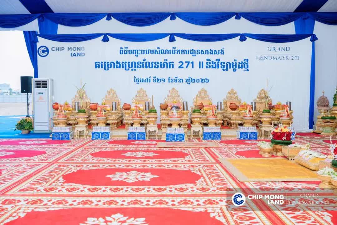 2026 年 3 月 21 日(金边讯),两周前,集茂地产商务办公二期项目奠基仪式圆满落幕并收获市场热烈反响,如今集团再领柬埔寨房地产行业风潮,正式举行 宏伟地标 271 二期项目(Grand Landmark 271 )奠基仪式。这一里程碑时刻,也标志着宏伟地标 271 项目旗下高端产品系 “宏伟地标臻藏系列” 迎来三款全新高端别墅的重磅预售,万众期待的新品终于面市。