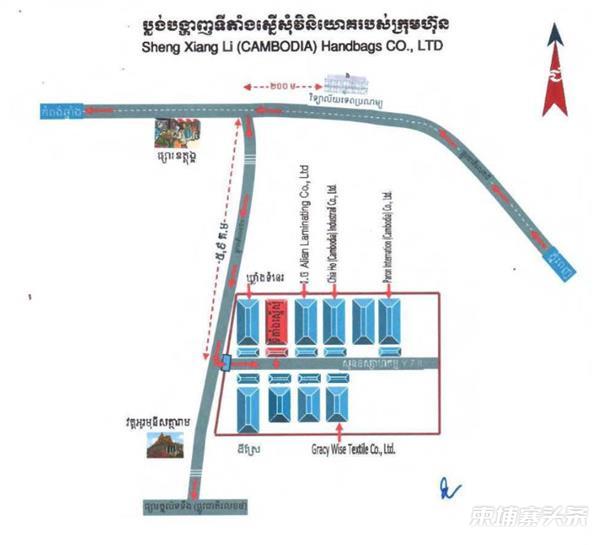 二,SHENG XIANG LI(CAMBODIA)CO.LTD,投资建设生产背包、腰带和皮包配件的工厂,位于干拉省波耶吕县大坝乡东那冰村51路旁边,协议投资额518万美元,可创造816个工作岗位。