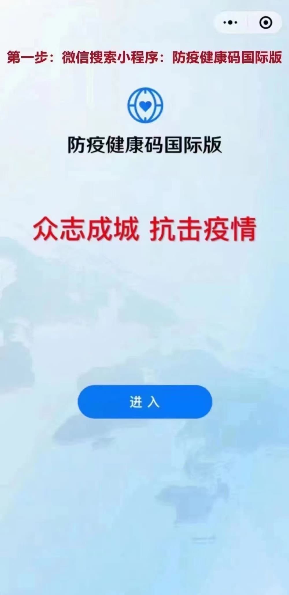第一步: 使用微信扫描“防疫健康码国际版”小程序点击进入系统。