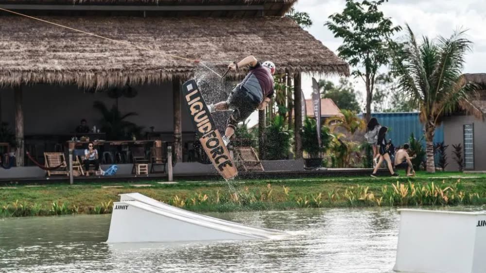 暹粒没有海,但仍能体验到冲浪项目。ICE WAKE PARK水上冲浪乐园,是暹粒一家集休闲娱乐餐饮于一体化的游玩场所,吸引不少本地游客前往。