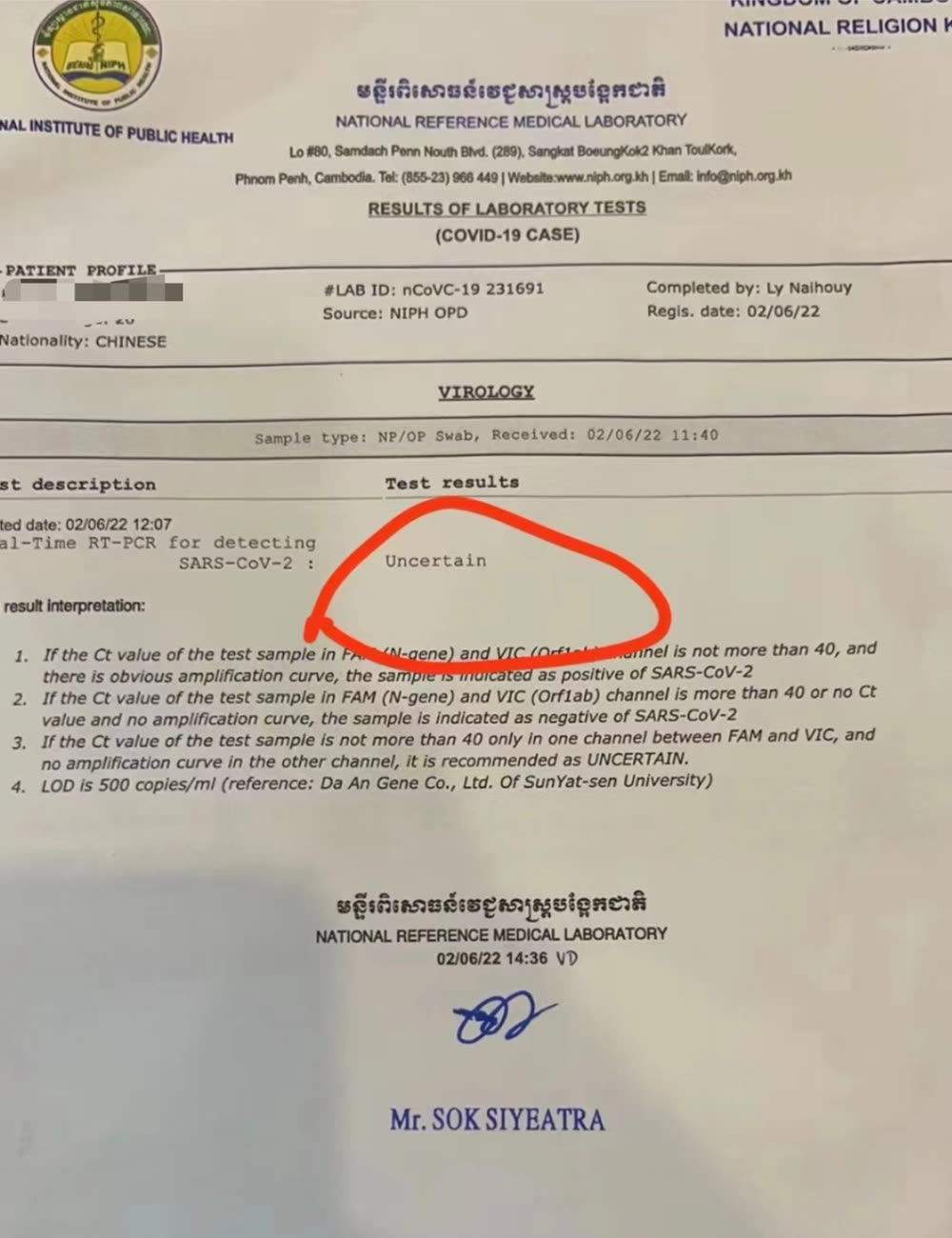 对于回国前检测结果显示“不确定”情况,柬埔寨有关检测部门尚未建立健全一套复核排除“不确定”异常结果,保障赴华人员回国的相关机制。