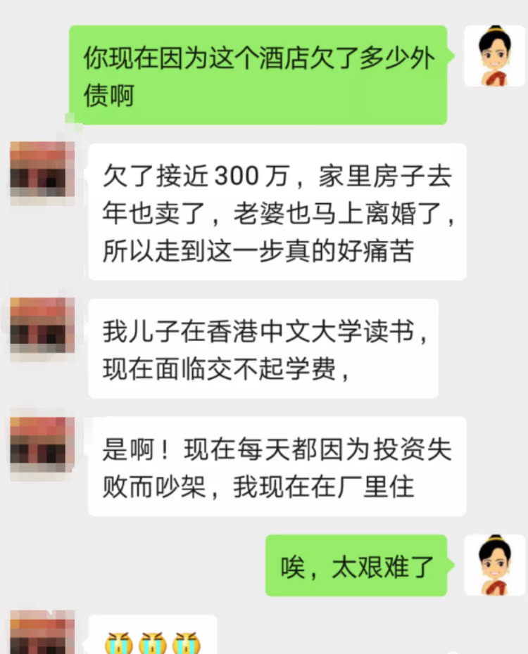 连带押金和装修,周森称投资这家酒店亏损了480万元人民币,因此欠了接近300万元外债。资金问题加上疫情,他的家具厂也面临着停产。
