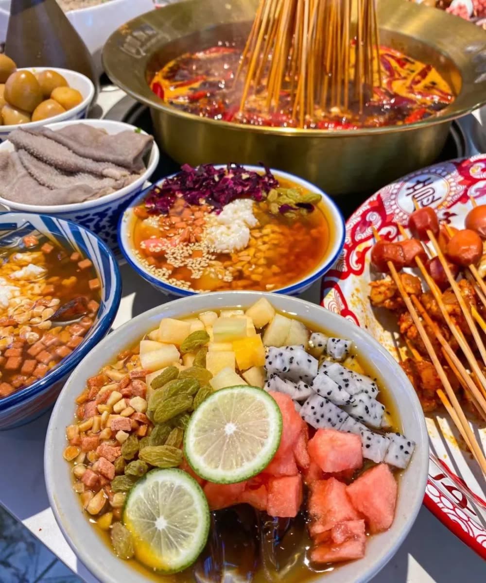 热辣的串串配上凉凉的冰粉