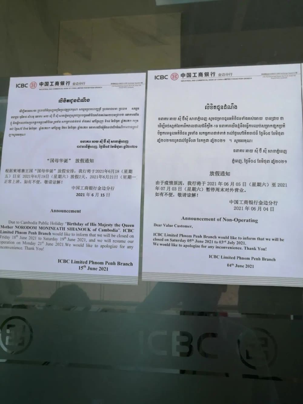 注意!非工作日预结汇汇款将暂停交易,因此需要在工作日时间提交,金边的工商银行是根据柬埔寨节假日放假的,具体可以关注银行的通知。