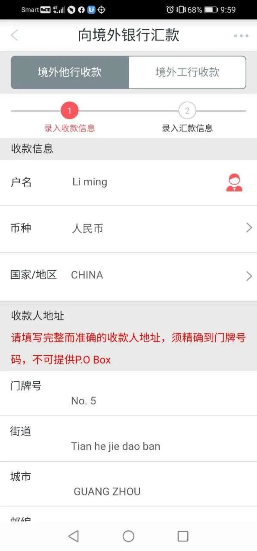 点击跨境汇款,填入相关资料