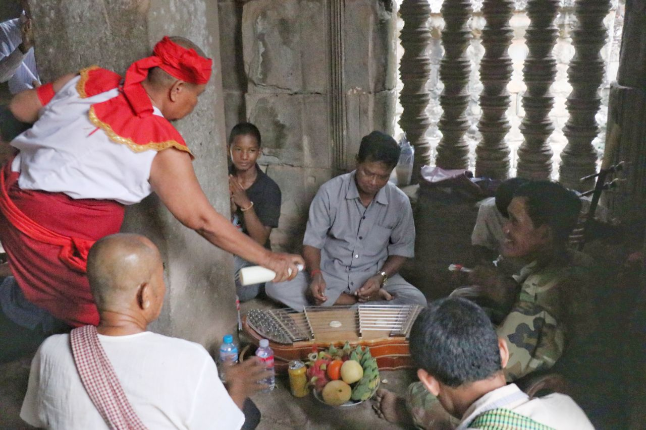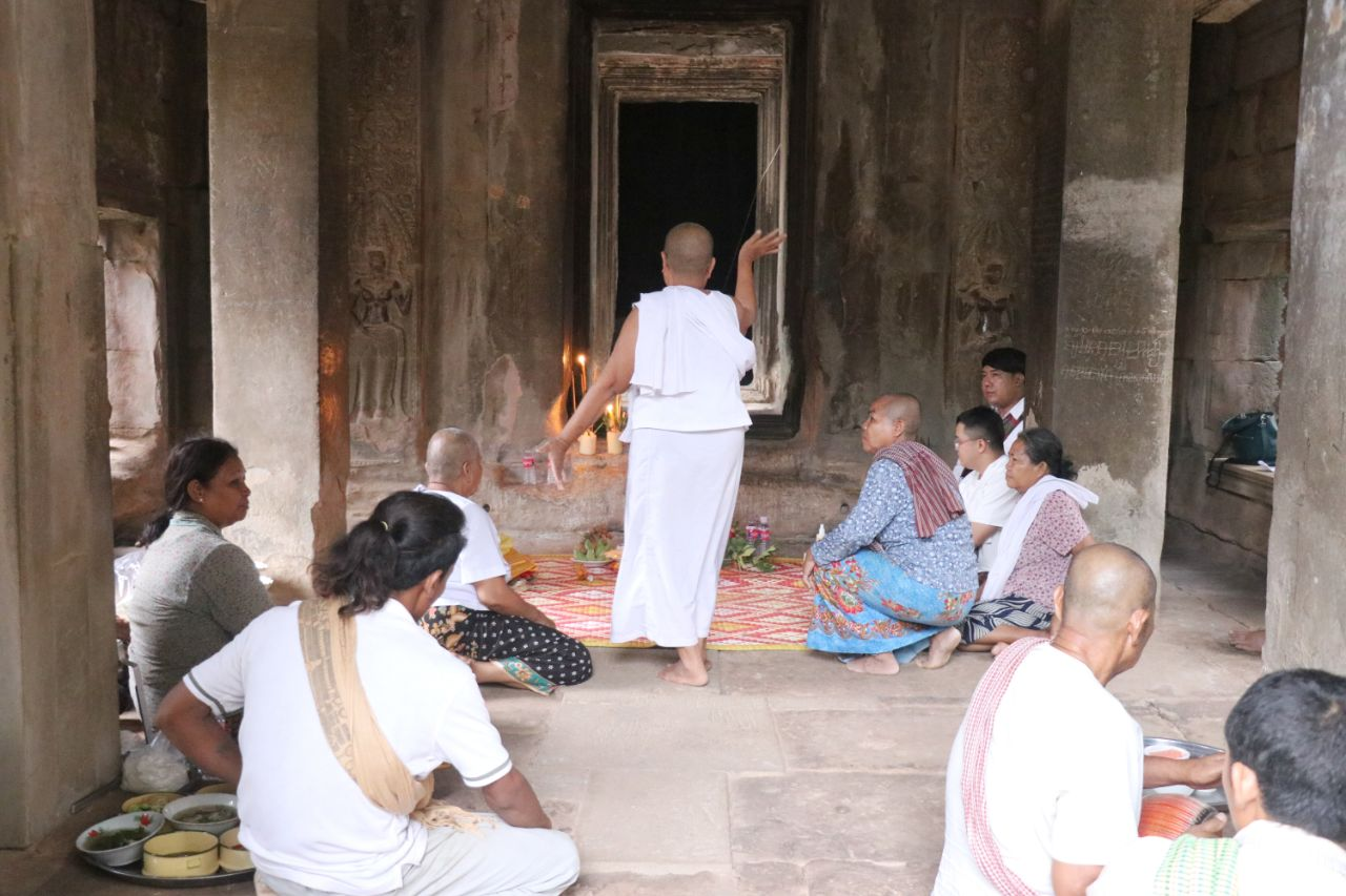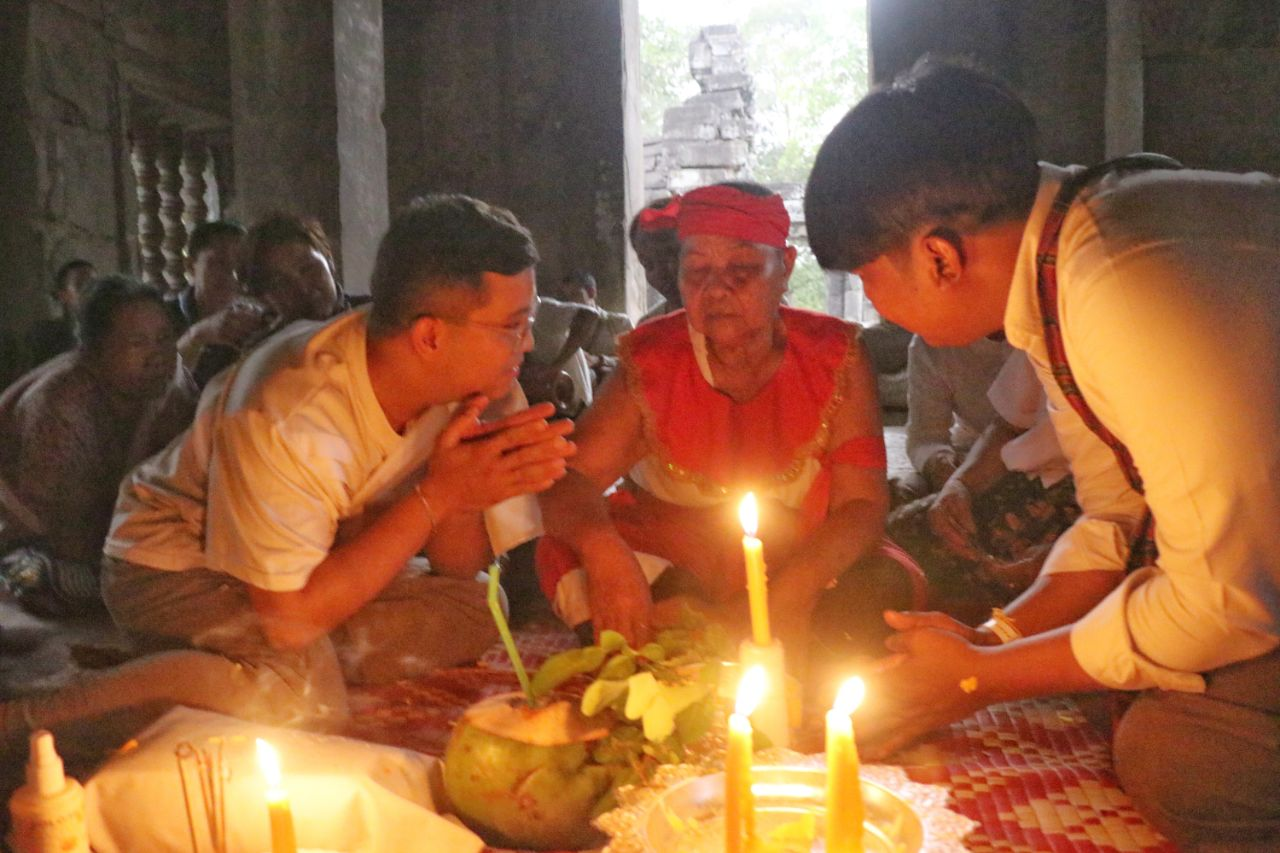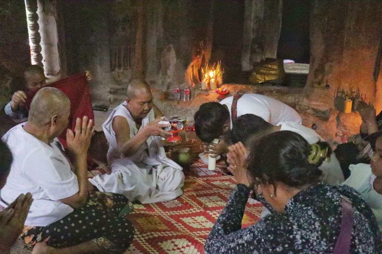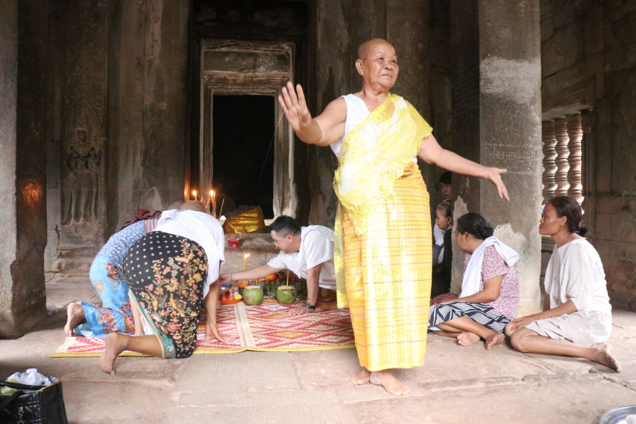 这一延续至今的非物质文化遗产仪式,通常在每年雨季来临前举行,是吴哥地区居民重要的传统信仰活动之一。今年的仪式在古寺中央祭坛举行,吸引了众多当地佛教信众参与。