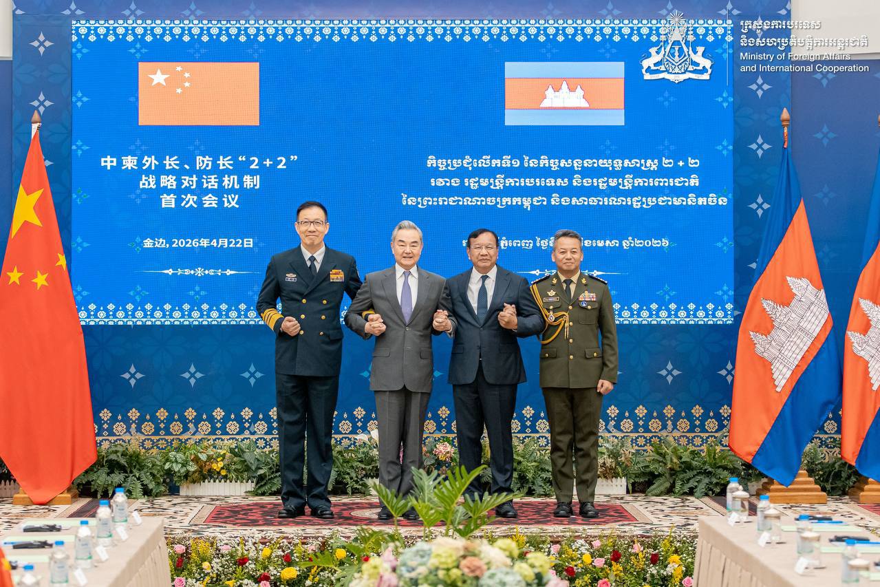 【柬埔寨头条综合报道】据柬媒消息,2026年4月23日,柬埔寨外交与国际合作部发布了22日举行的首届柬中外长、防长“2+2”战略对话机制会议成果。公告宣布,柬中两国一致同意将现有的“2+2”对话机制升级为“3+3”机制。