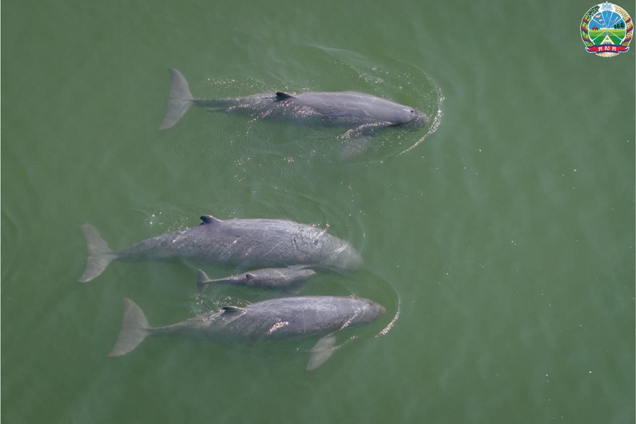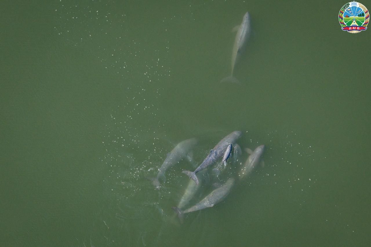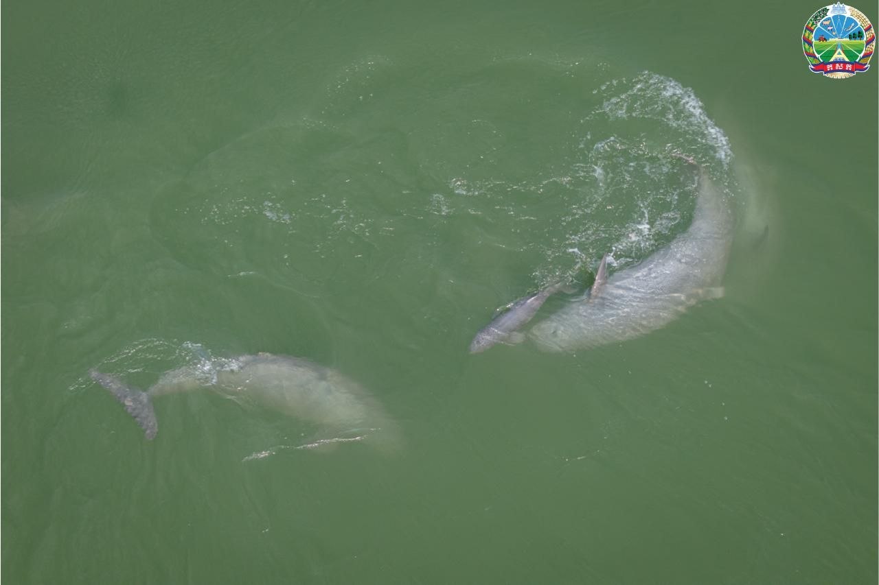 据柬埔寨农林渔业部通报,这头小江豚由该部新闻制作团队于当日下午15时20分率先发现。随后,由渔业总局研究团队、桔井省渔业局及世界自然基金会(WWF)组成的专家组迅速赶赴现场核实。专家确认,该江豚出生仅约3天,身体状况良好,正随一个约有6头成年江豚的群体共同游弋。