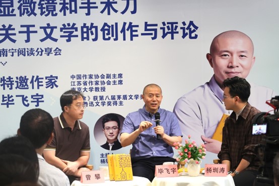 著名作家毕飞宇亮相2026年“八桂书香周”2026年4月23日5,296 阅读4月23日,2026年“八桂书香周”系列活动之“显微镜和手术刀——关于文学的创作与评论”阅读分享会在广西南宁举行。著名作家、茅盾文学奖得主毕飞宇与《南方文坛》杂志副主编、广西文艺评论家协会副主席曾攀应邀出席,与现场读者展开对谈交流。著名作家、茅盾文学奖得主毕飞宇与读者交流图书签售活动标签:#世界读书日#八桂书香周0分享收藏