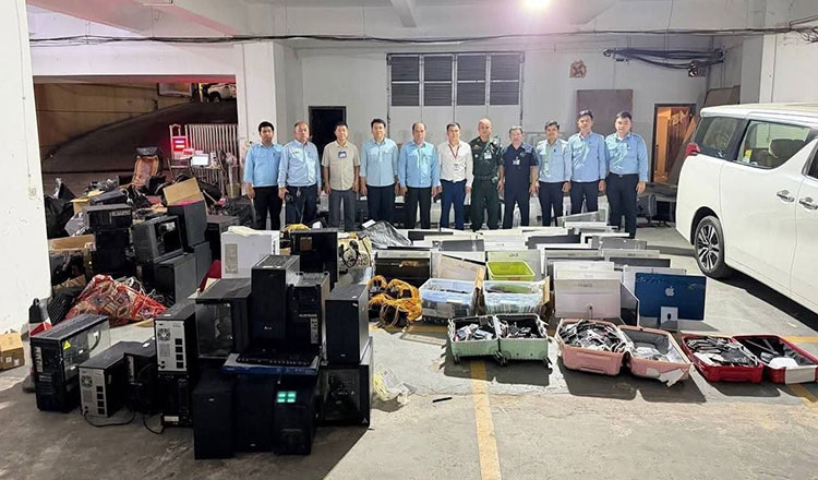 在西哈努克市一家酒店后方的一处场所,当局发现了一个正在运作的诈骗窝点,逮捕了49名嫌疑人,并缴获了大量电子设备,包括数百部手机和电脑。
