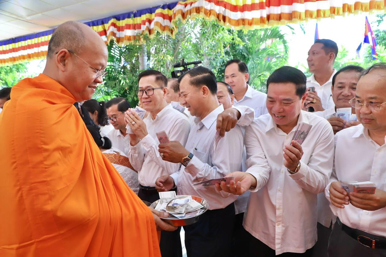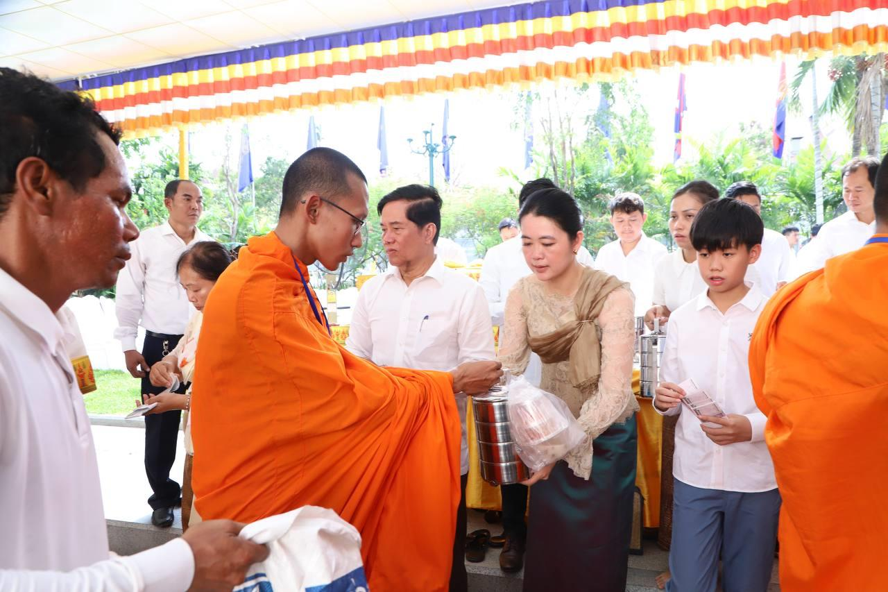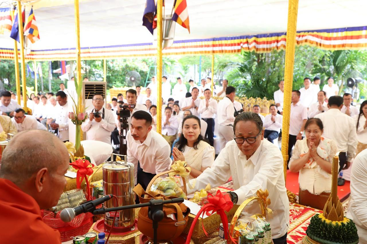 【柬埔寨头条综合报道】据柬媒4月13日报道,在柬埔寨传统新年即将到来之际,金边市长坤盛主持举行佛教布施仪式,邀请75名僧侣参与,以祈福迎新、共庆佳节。