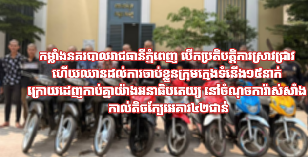 【柬埔寨头条综合报道】据柬媒4月9日报道,金边警方近日破获一起不良少年当街围殴、扰乱公共秩序案件,共逮捕15名涉案人员。