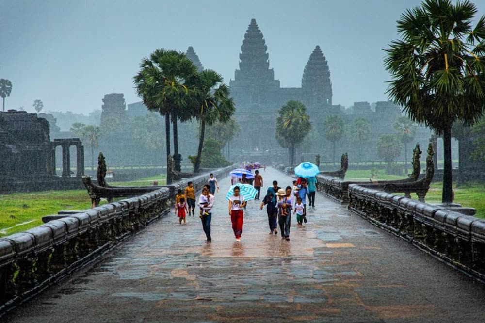 无论旱季或雨季都会吸引很多国内、国外游客到此打卡,尤其是中国游客。现在已是柬埔寨的雨季,所以几乎天天下雨,造成吴哥窟更加美观,美景如画不亚于旱季的美观。